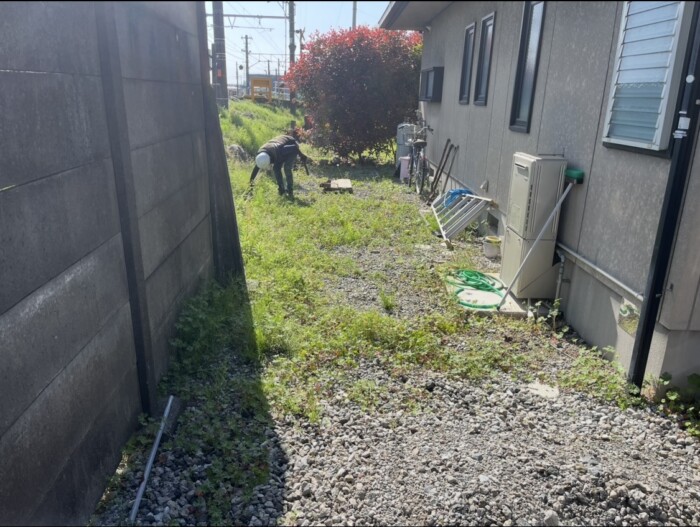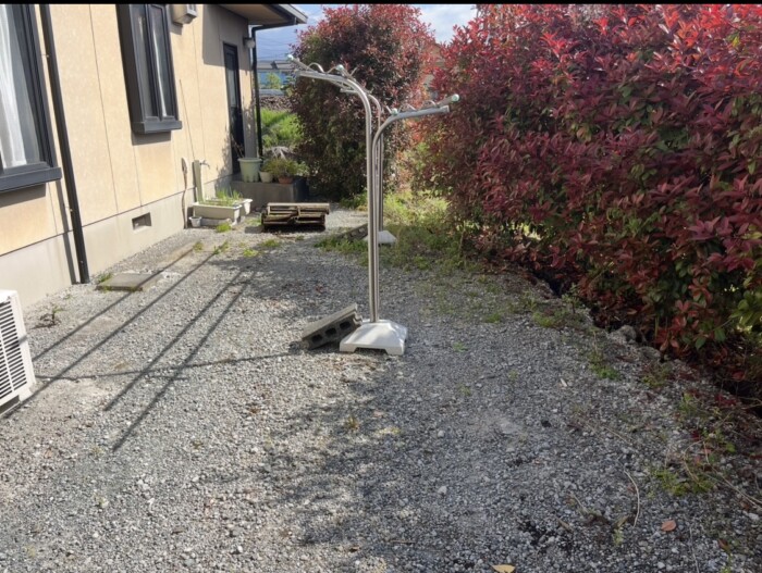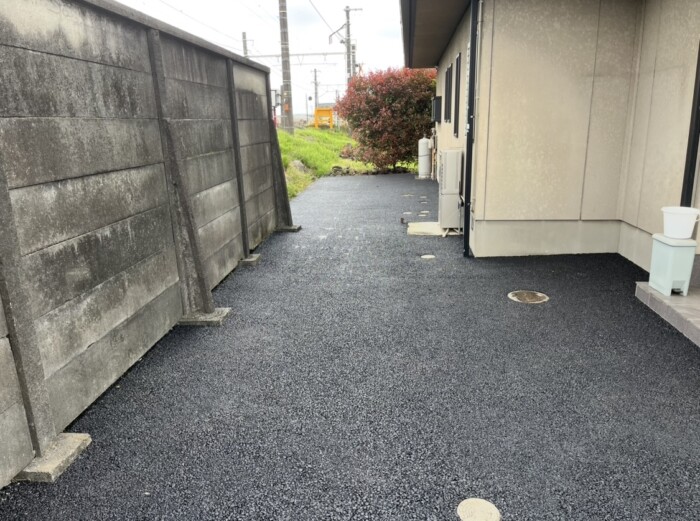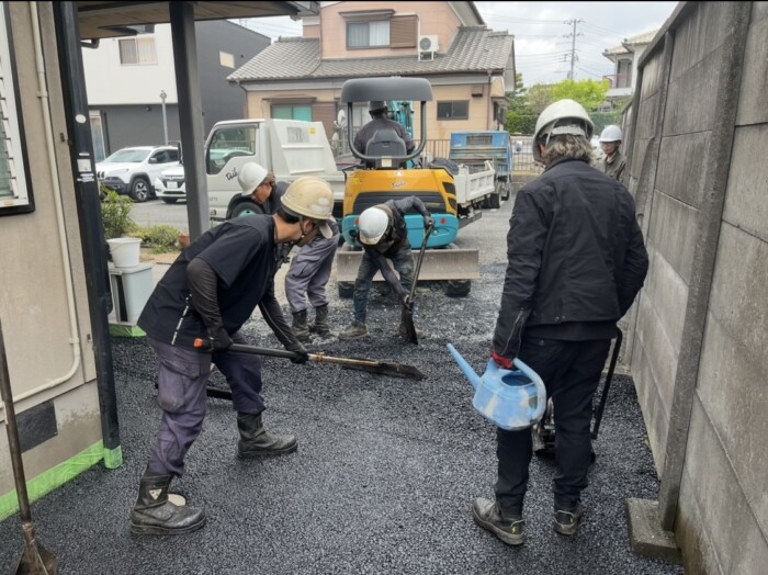 草が生えて、足元が悪い状況から2日間かけて綺麗なアスファルトの外構に仕上げました!