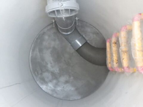 下水道管路の接続点となるマンホールの設置工事を実施しました。マンホール本体の据付けに加え、内部のインバート(下水の流れを円滑にするための底部構造)を施工し、維持管理性と流下能力を確保しました。インバートの勾配を正確に設定することで、汚水の滞留を防ぎ、長期的な機能維持を実現します。